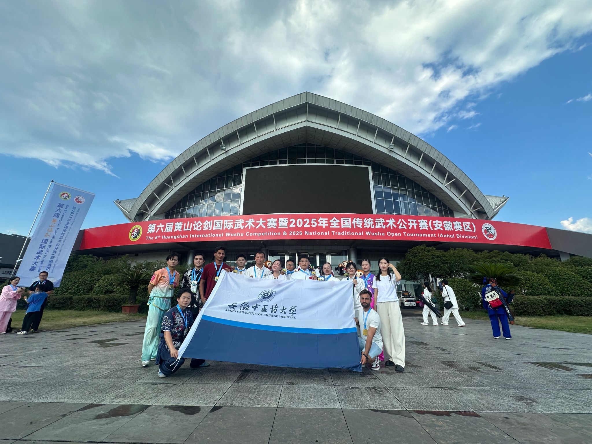 2025年8月15日至20号,第六届黄山论剑国际武术大赛暨2025年全国传统武术公开赛(安徽赛区)在黄山市屯溪区圆满落幕。本次大赛由国家体育总局武术运动管理中心、中国武术协会、安徽省体育局联合主办,吸引了来自境内外的千余名武术精英同台竞技。安徽中医药大学武术代表队在此次大赛中表现卓越,凭借过硬的武术功底和顽强的拼搏精神,共斩获7枚金牌、8枚银牌、3枚铜牌,取得了竞赛成绩与精神文明双丰收。
