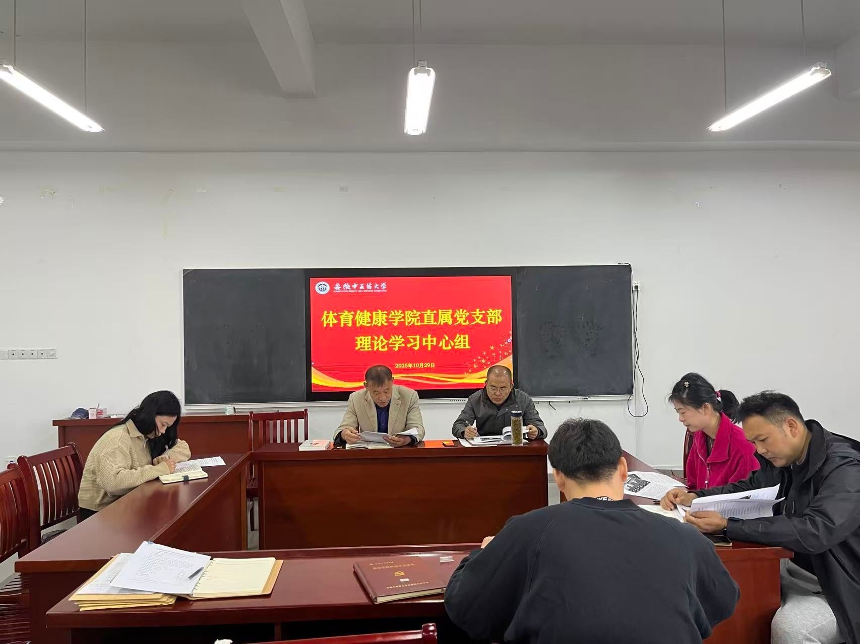 10月29日上午,体育健康学院直属党支部在至精楼A334召开第八次理论学习中心组会,会议由学院直属党支部书记、院长吴臣军主持。