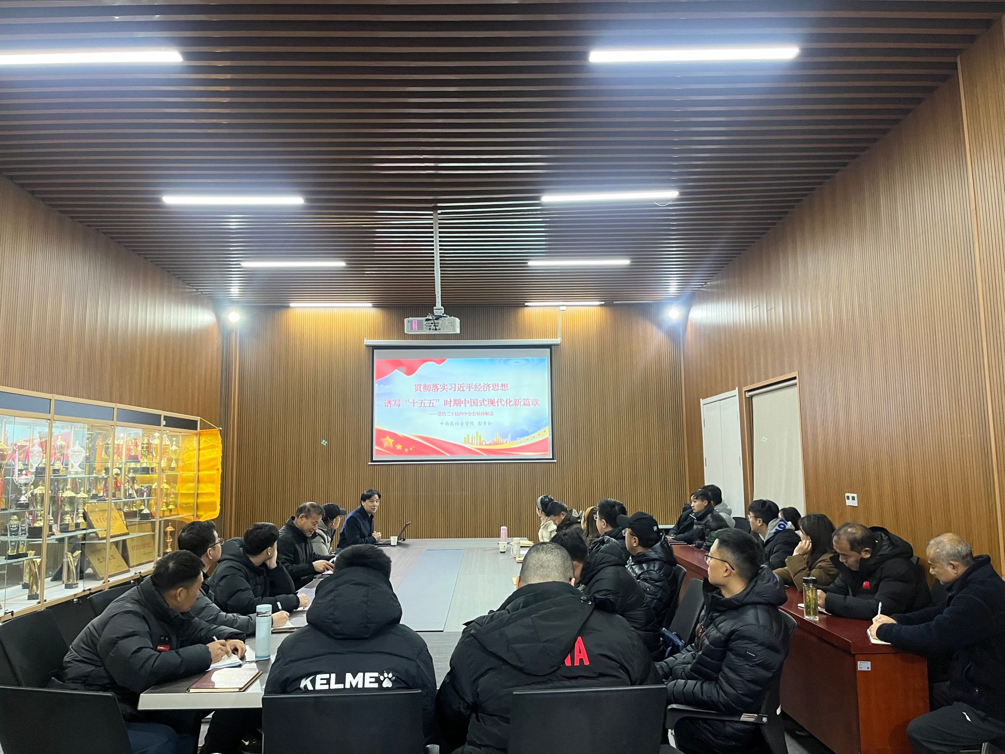 会上,彭青和围绕党的二十届四中全会精神,以“贯彻落实习近平经济思想谱写‘十五五’时期中国式现代化新篇章——党的二十届四中全会精神解读”为主题,从“十四五”规划完成情况、国内外形势与中国式现代化任务以及“十五五”规划主要内容三大部分内容展开宣讲。宣讲中他结合学院专业建设,建议体育健康学院立足自身特色,在健康中国、体育强国建设中找准定位,积极探索具有学院特色的高质量发展路径,让学院发展与国家发展大局同向同行。