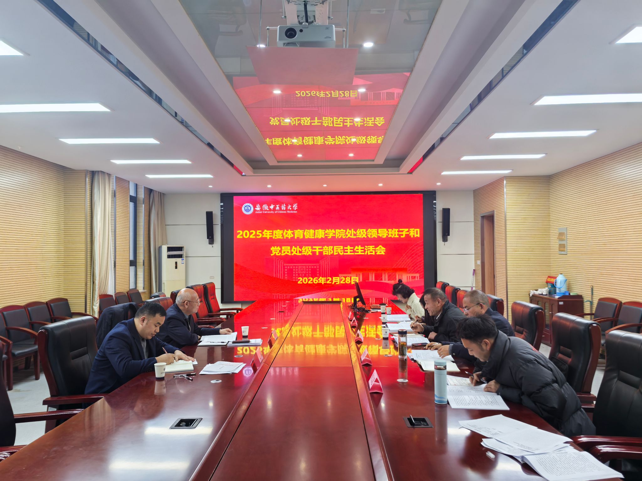 2月28日下午,体育健康学院直属党支部召开2025年度处级领导班子和党员处级干部民主生活会。校党委副书记、校民主生活会第三指导组组长周新发,校学工部(处)长、校民主生活会第三指导组成员赵伟到会指导,周新发作点评讲话。学院党政班子参加会议,会议由学院直属党支部书记吴臣军主持。