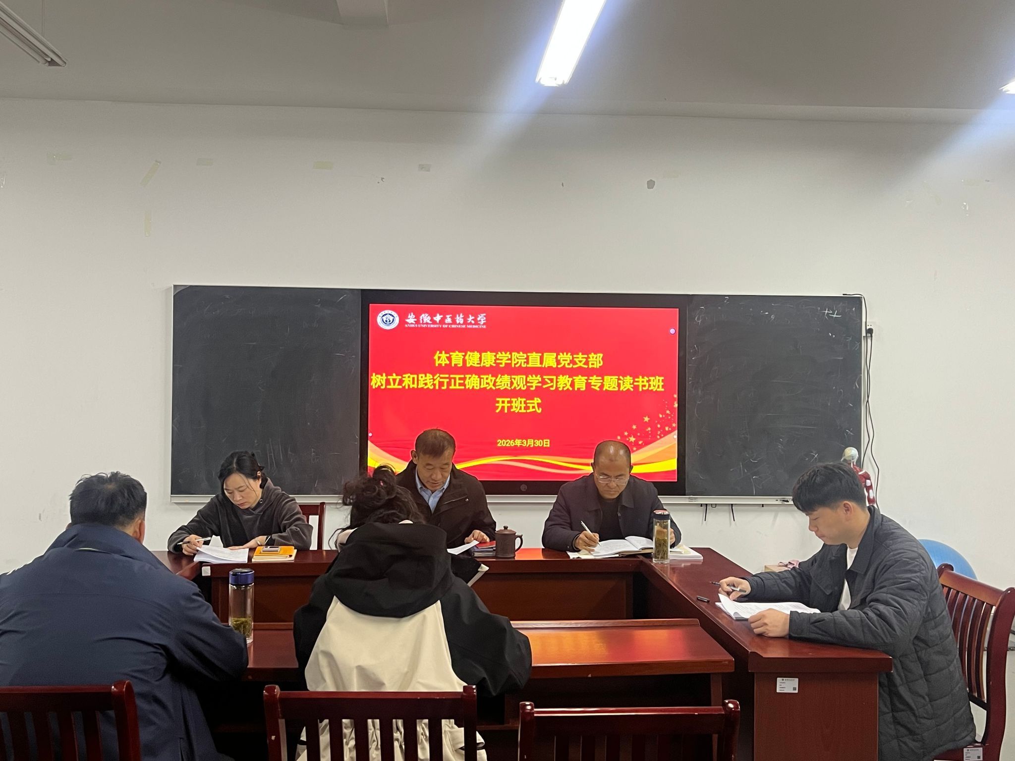 3月30日上午,学院直属党支部举办树立和践行正确政绩观学习教育读书班开班式。会议由学院直属党支部书记吴臣军主持,学院领导班子成员、支部委员参加会议。