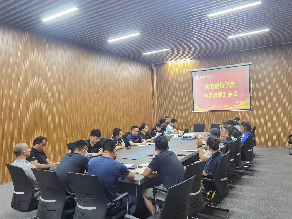 6月15日下午,体育健康学院召开全体教职工会议,会议由体育健康学院院长林红主持。