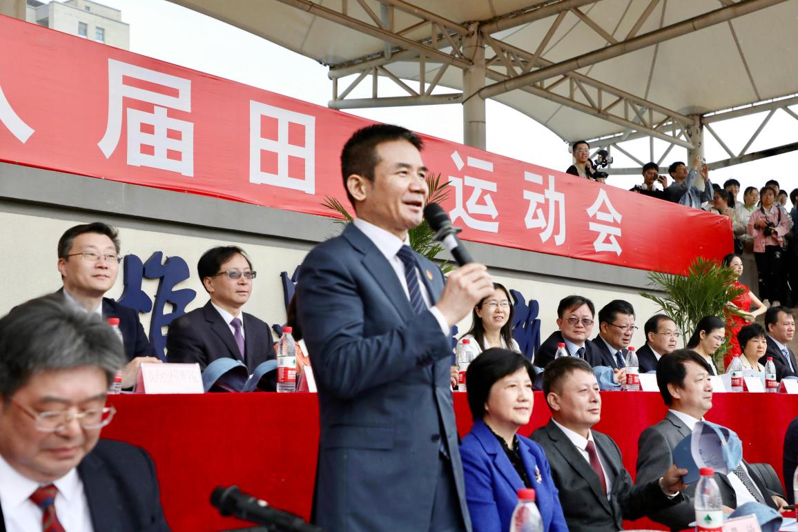 青春的脚步,灿若春晓之花。4月13日上午,安徽中医药大学少荃湖操场上彩旗招展,标语飞扬。安徽中医药大学第八届田径运动会炫彩开幕。学校党政领导王琦、戴敏、魏骅、许钒、罗绍明、聂久胜、吴达武、田磊及各部门、各学院负责人,全体运动员和各院部代表队参加开幕式。副校长魏骅主持开幕式,副校长戴敏致开幕词,党委书记王琦宣布运动会开幕。