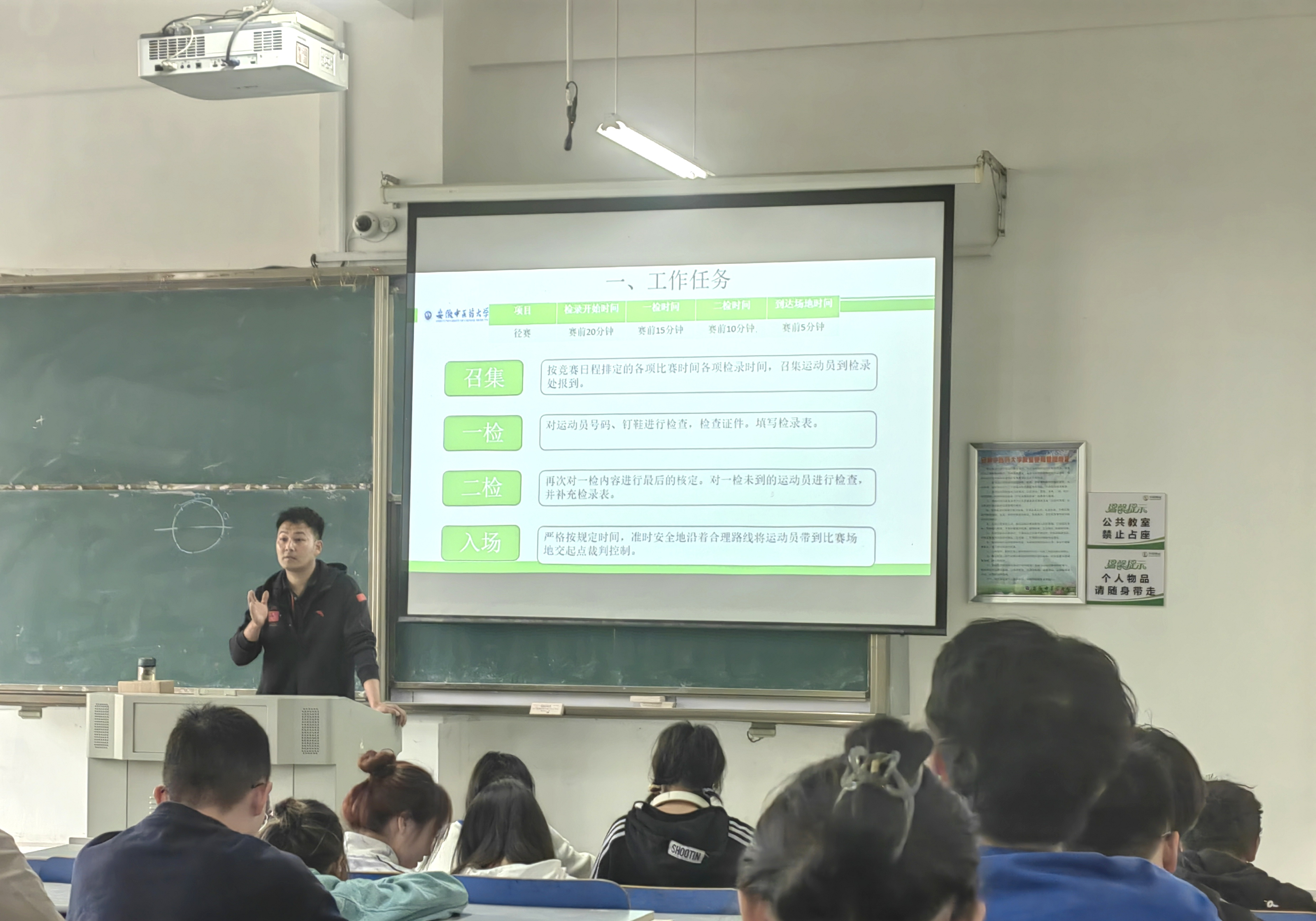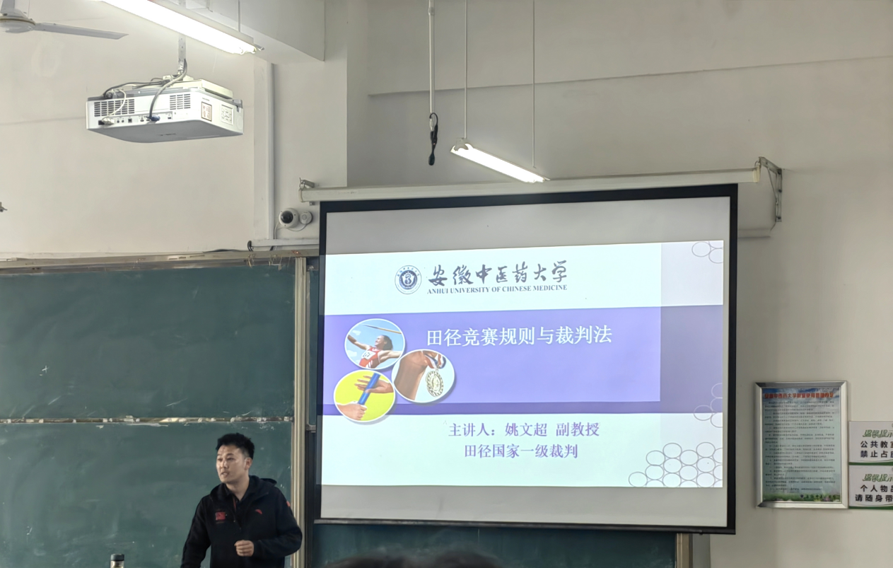 为保障安徽中医药大学第八届田径运动会裁判工作的顺利进行,4月12日下午,国家田径一级裁判员、体育健康学院副教授姚文超在少荃湖校区A112举办了《田径裁判规则与赛事服务保障》的专题讲座。