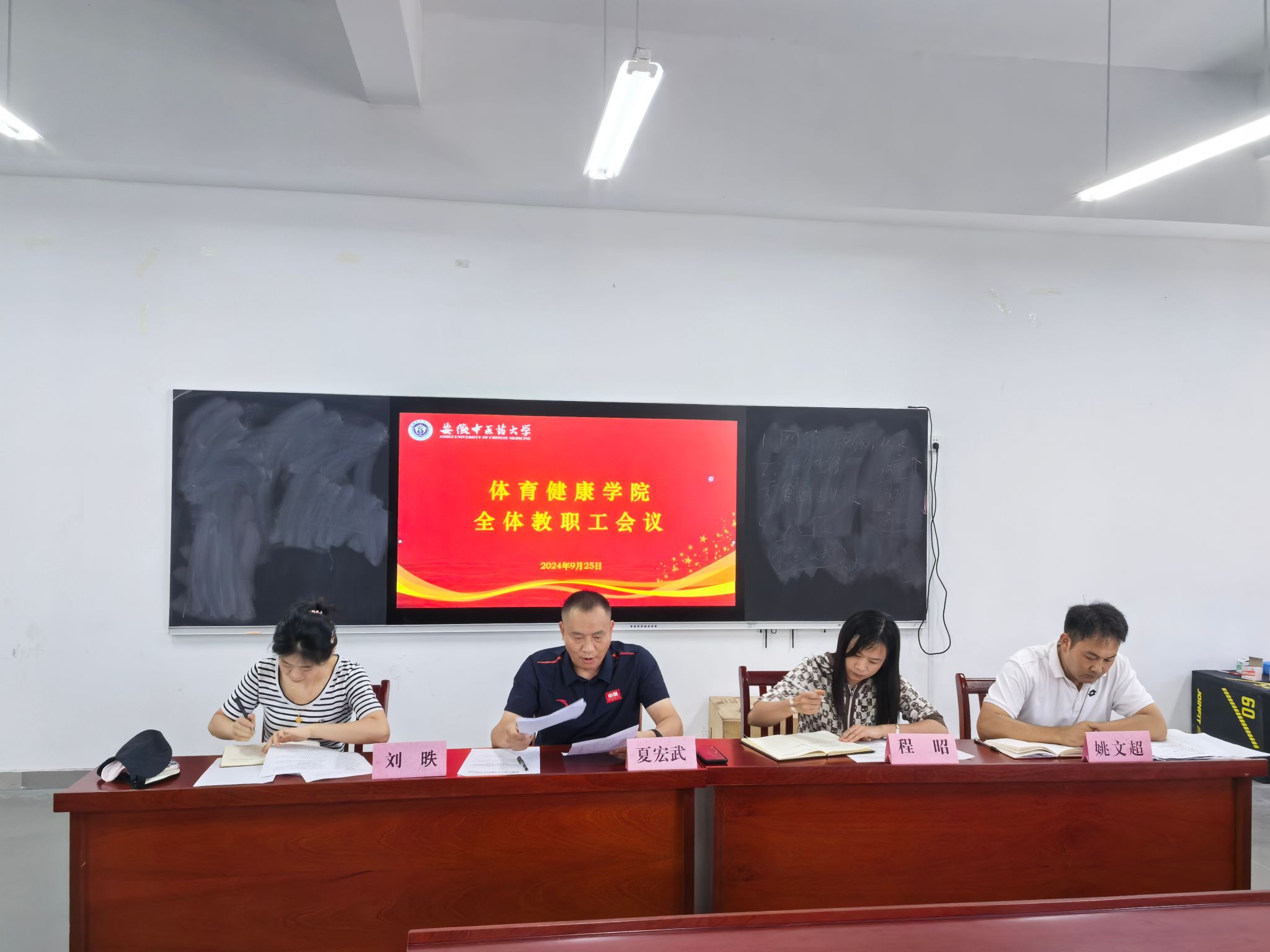 9月25日,体育健康学院召开全体教职工会议,会议由学院直属党支部书记夏宏武主持,全体教职工参会。