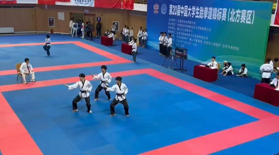 11月11日至16日,第20届中国大学生跆拳道锦标赛(北方赛区)在河北迁安市顺利举行,我校11名运动员在全国1200余名顶尖选手的角逐中奋勇拼搏,创下2金1银2铜、1项第五名的历史最好成绩,周航宇同学获评“优秀运动员”,彭小雷教练获得“优秀教练员”称号,集体荣获“体育道德风尚奖”。