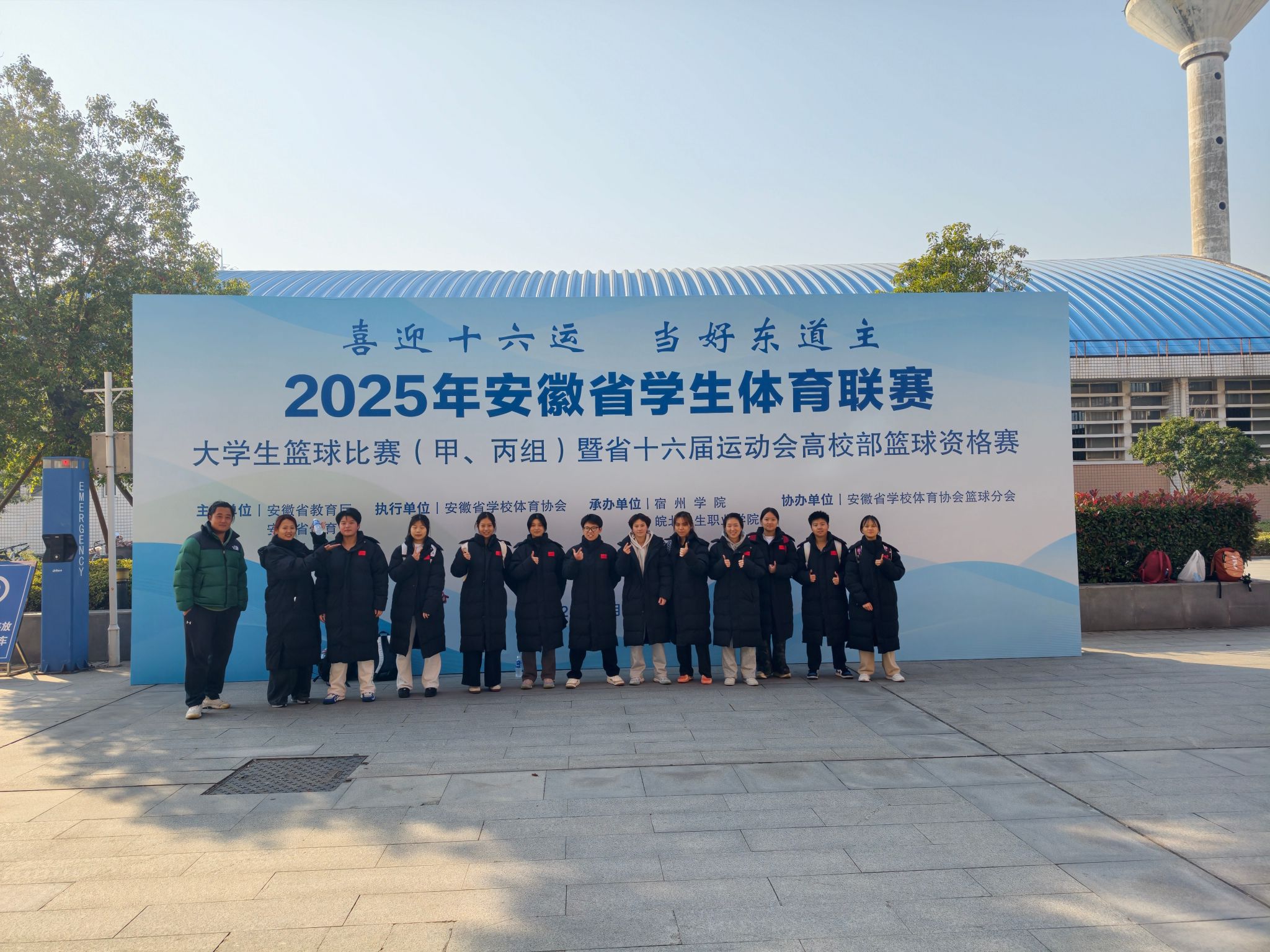 11月17日至24日,2025年安徽省学生体育联赛大学生篮球比赛暨省十六届运动会高校部篮球资格赛在宿州圆满落幕。校女子篮球队历经多轮激烈角逐,最终以扎实的战术素养与顽强的拼搏精神斩获第八名,创下校史该项目比赛最佳战绩,获得了明年省十六届运动会参赛资格,为学校赢得荣誉。