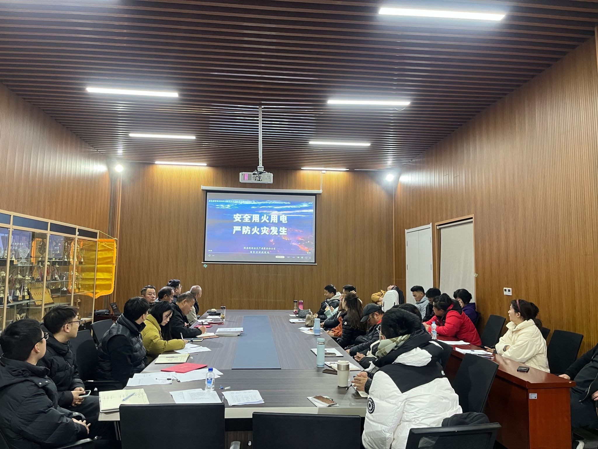 会上,集体观看了国务院安全生产委员会办公室、国家消防救援局发布的火灾警示教育片。