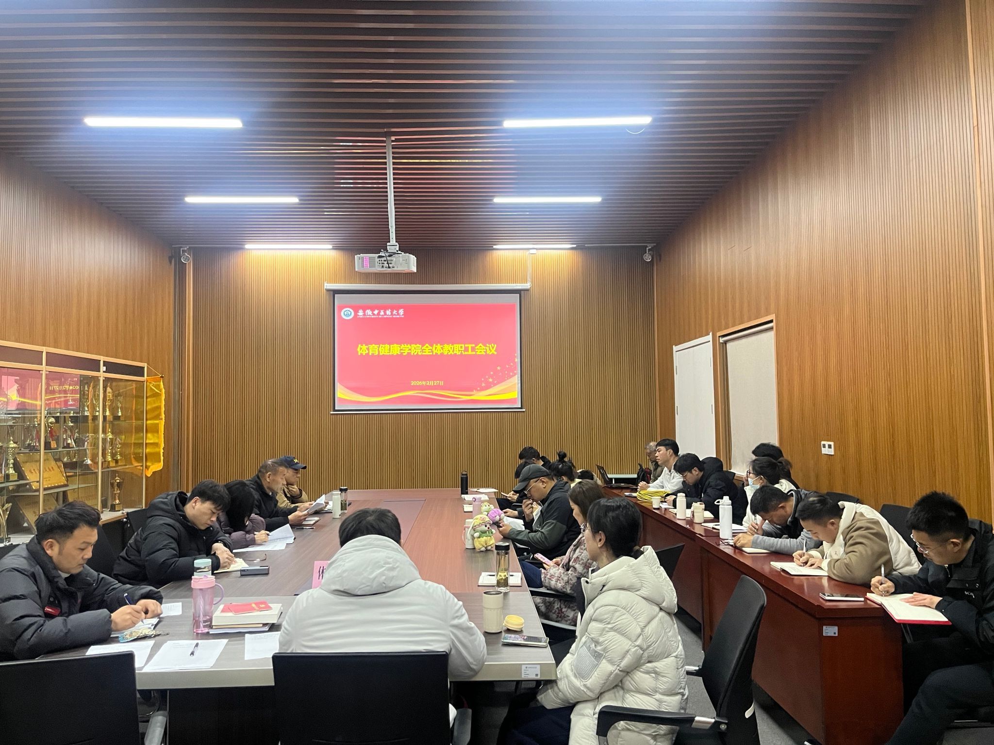 2026年2月27日上午,学院于风雨操场106会议室召开全体教职工会议,会议由学院直属党支部书记、院长吴臣军主持,全体教职工参会。