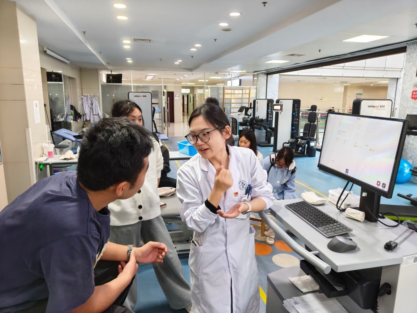 无锡市第九人民医院作为集医疗、教学、科研为一体的综合性医院,其中医康复科、中医骨伤科在中西医结合康复治疗领域特色鲜明,拥有中药熏洗、针刺推拿、整脊疗法等20余项中医特色诊疗技术,承担多项省市级科研课题,荣获多项行业技术奖项,为实践教学提供了高水平的临床平台。访学期间,师生们先后参观了医院中医康复治疗区、西医康复治疗区、运动康复中心、高压氧治疗区等核心科室,近距离观摩了肢体创伤康复、慢性疼痛调理等临床实操过程,医院专家结合典型病例,就康复治疗方案制定、中医特色技术应用等内容进行了现场讲解。