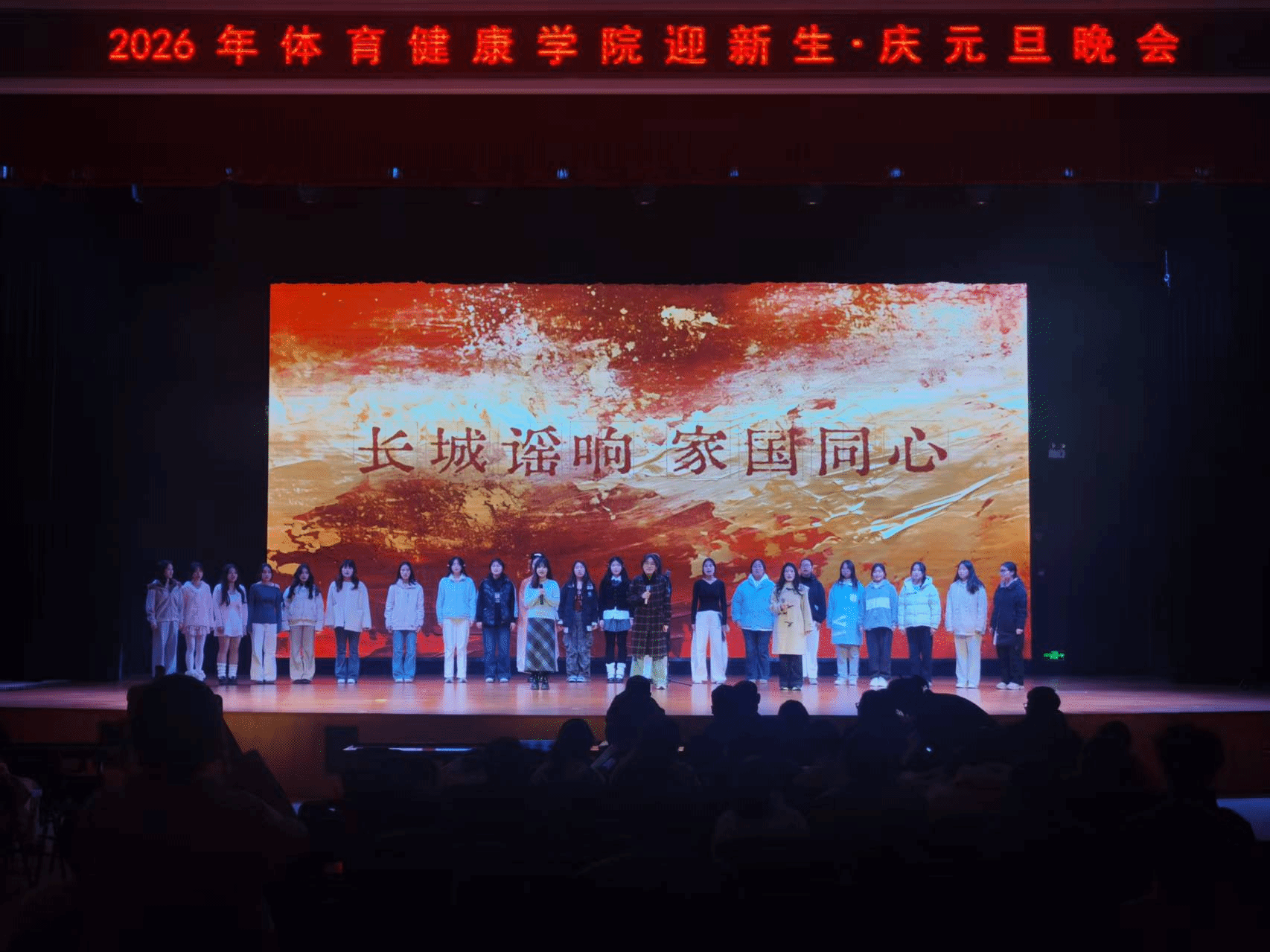 压轴环节的大合唱《长城谣&我和我的祖国》与《明天会更好》,更是将晚会氛围推向高潮,唱出了学子们对祖国的深情祝福和对未来的美好期许。整场晚会不仅展现了体育健康学院学子积极向上的精神风貌,也凝聚了师生情谊,为新年增添了温馨与欢乐的氛围。