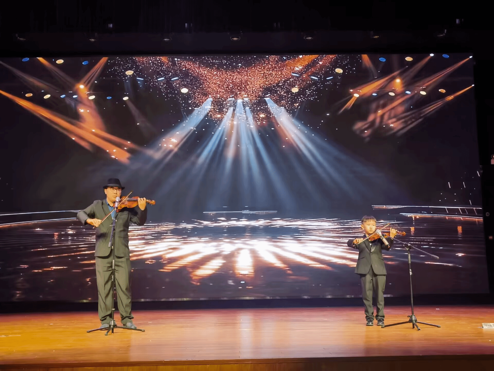 (体育健康学院教师董纪鹏与其子董子琰表演小提琴协奏)