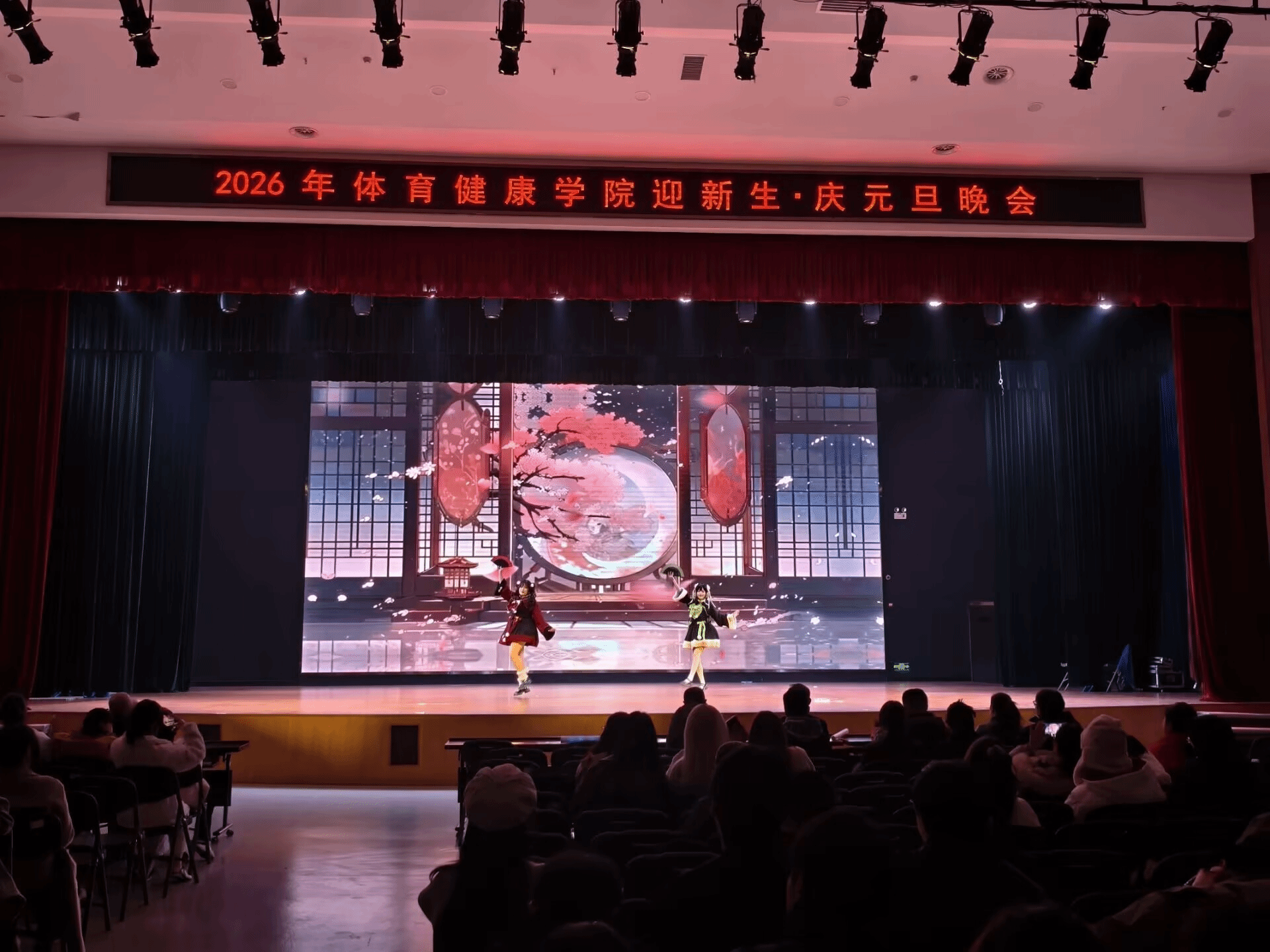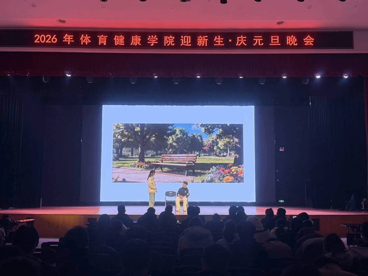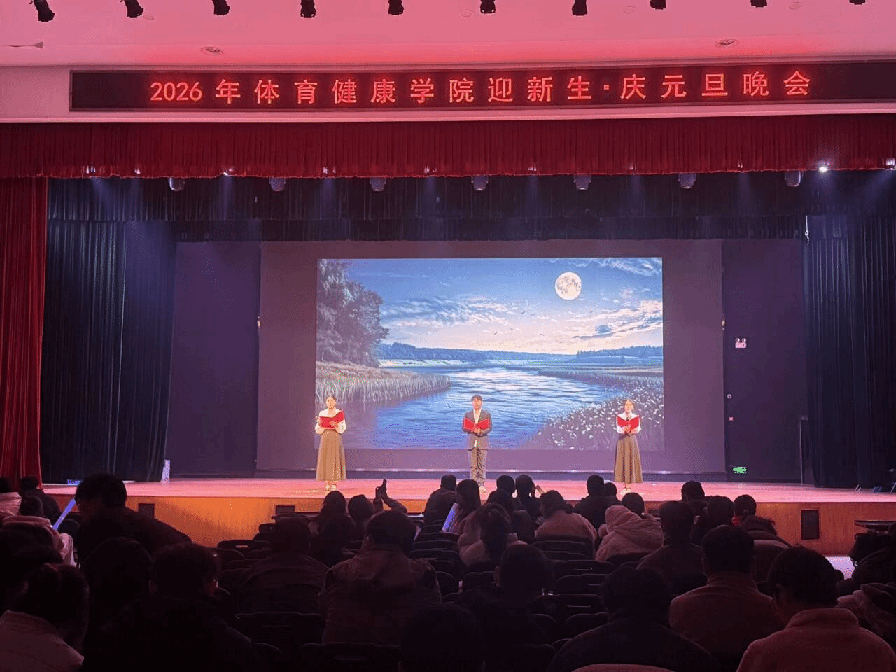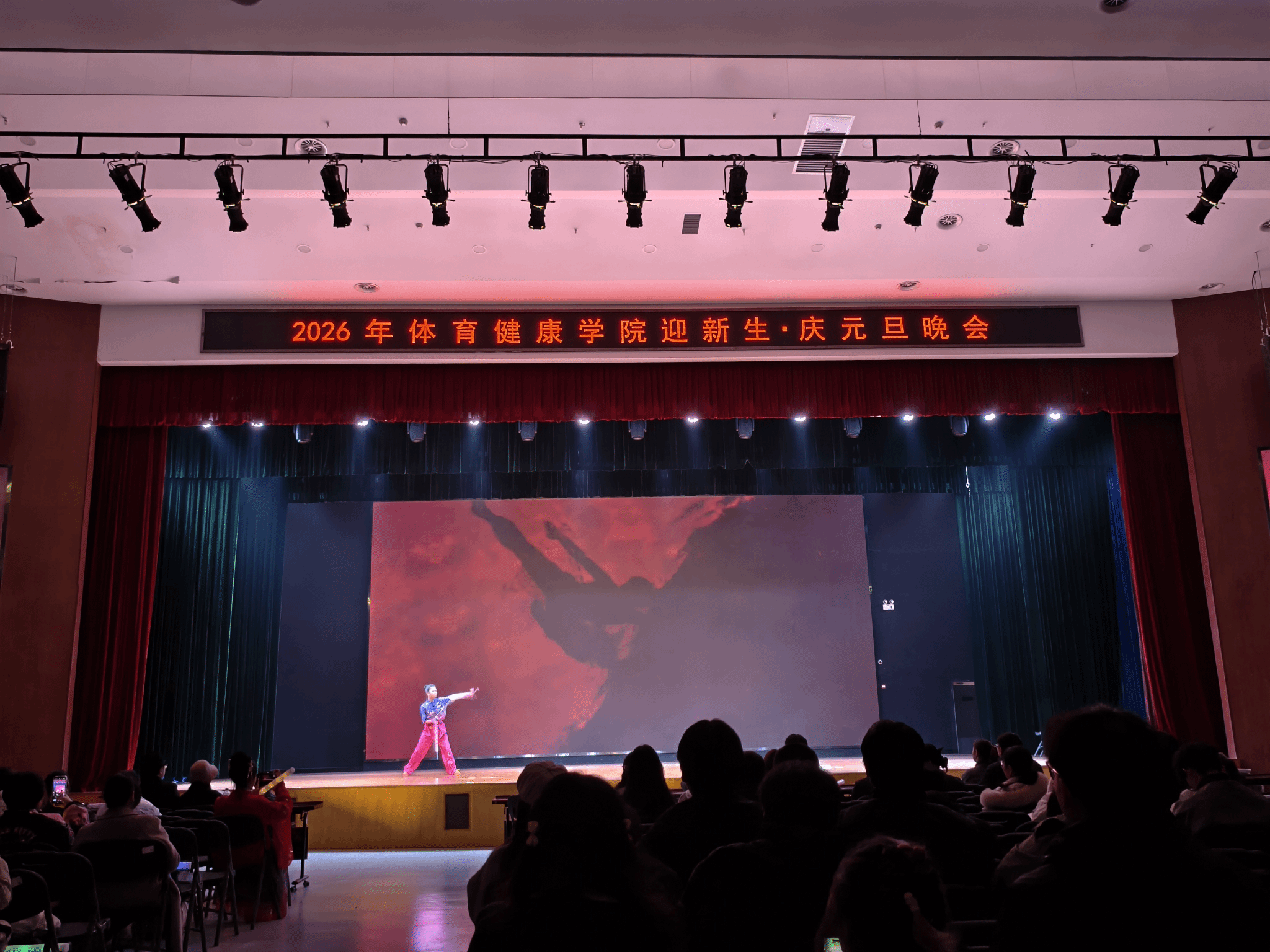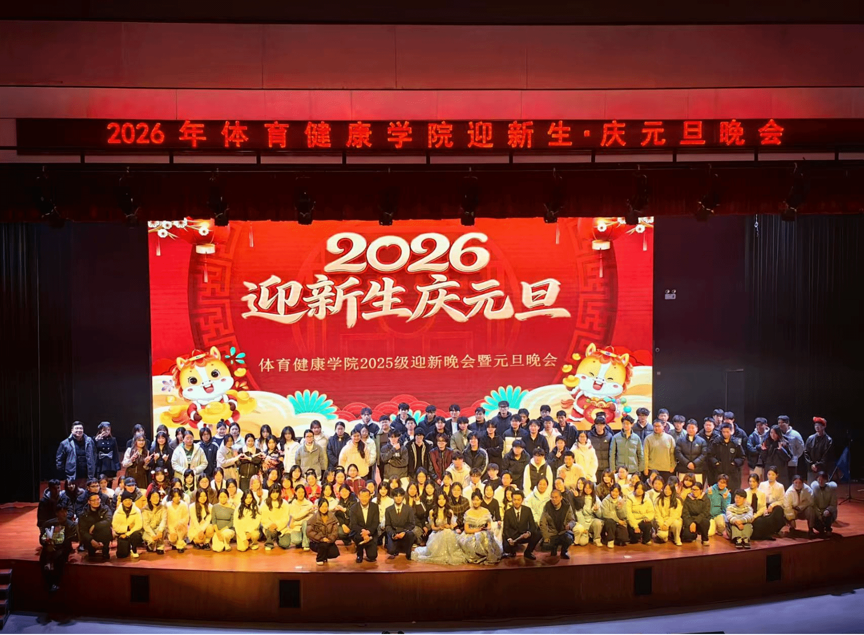 辞旧迎新之际,体育健康学院全体师生迎新元旦晚会于12月19日在大学生活动中心精彩上演。晚会以”迎新春·庆元旦“为主题,展现“青春碰撞、古风雅韵、潮趣同庆”的多重风采,为体育健康学院大家庭呈现了一场兼具青春活力与文化底蕴的视听盛宴,现场其乐融融,爱心满满。