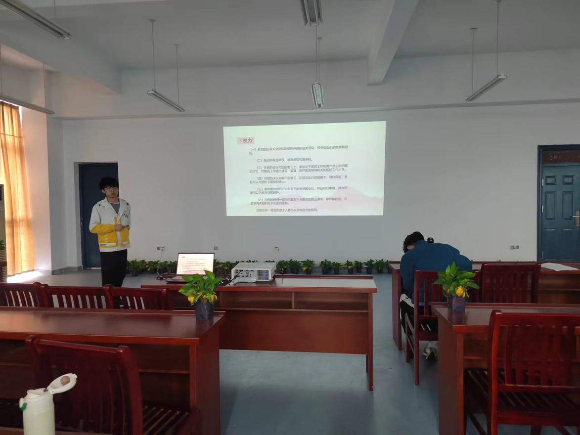 4月14日,21级运动康复班团支部书记吴永强对本支部青年进行入团前培训。