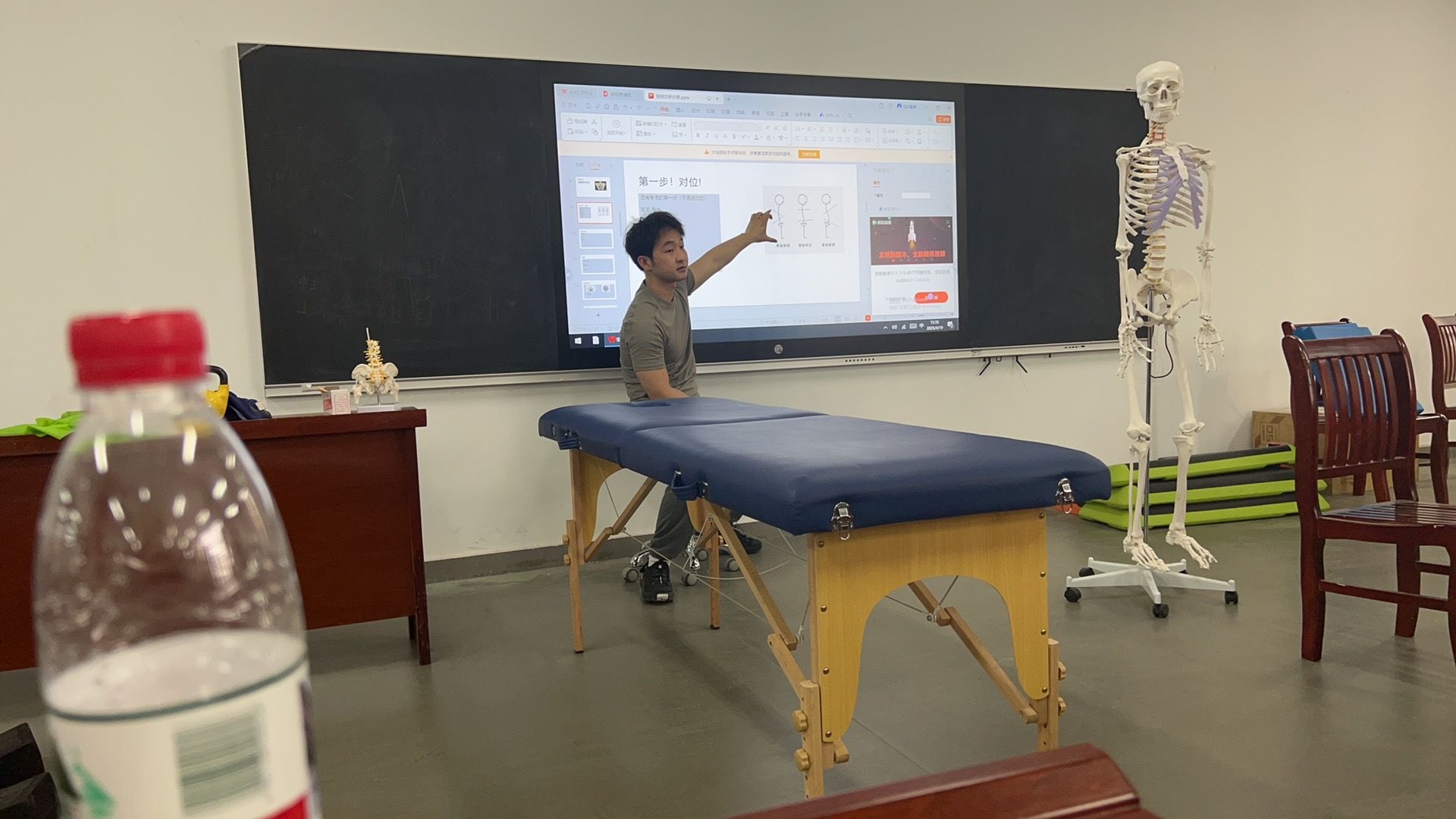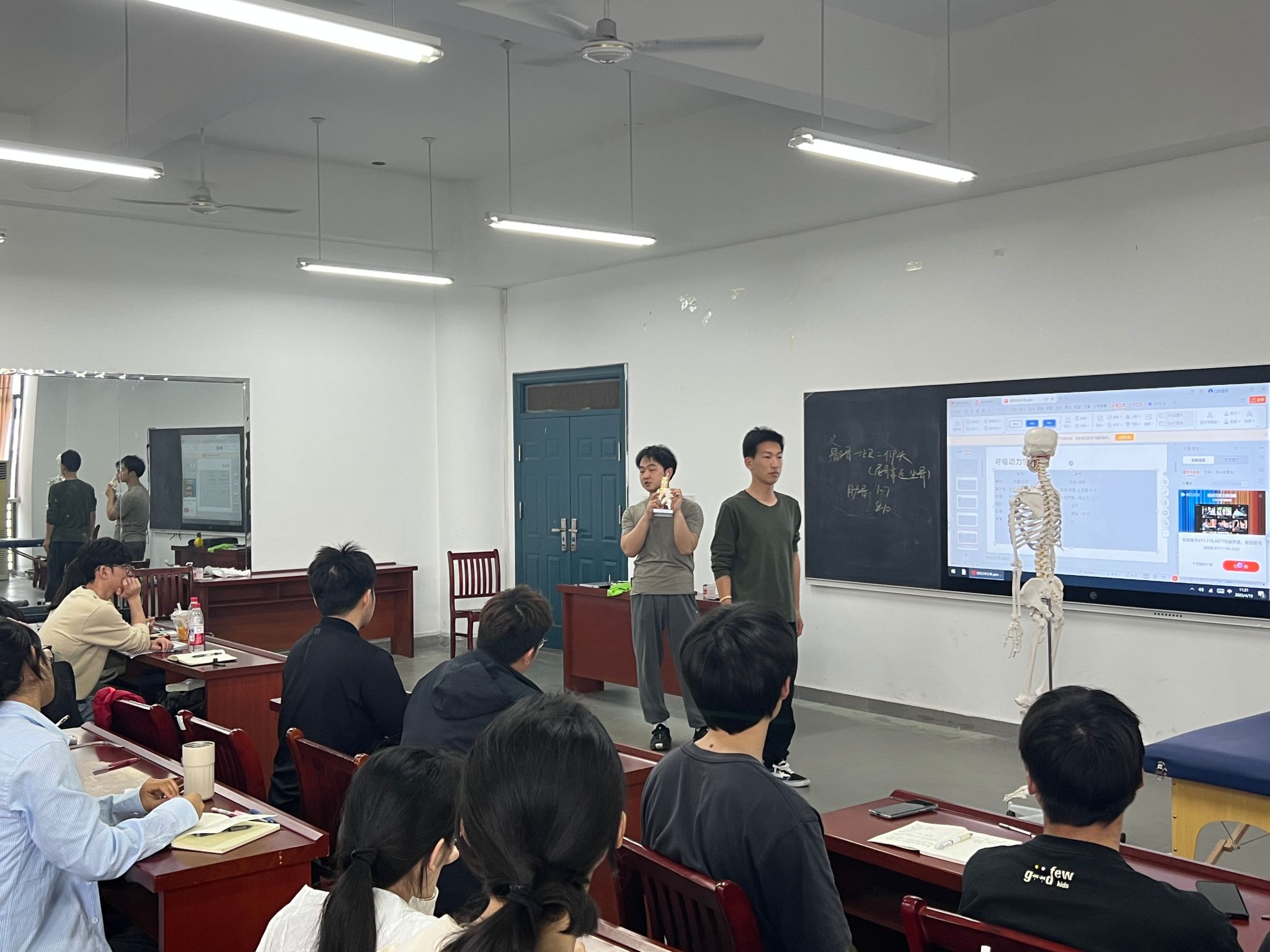 讲座中,王瑞以“空间动力学”为核心,结合人体骨骼模型、动态PPT演示及真实案例,系统剖析了康复治疗中身体对位、动作控制与生物力学平衡的关键技术。通过“力学体系”“对位动作实操”等模块,他深入浅出地阐释了如何通过空间动态调整优化患者康复路径,并现场指导学生进行跪趴姿势练习、肌骨手法模拟等操作,强化理论向实践的转化能力。